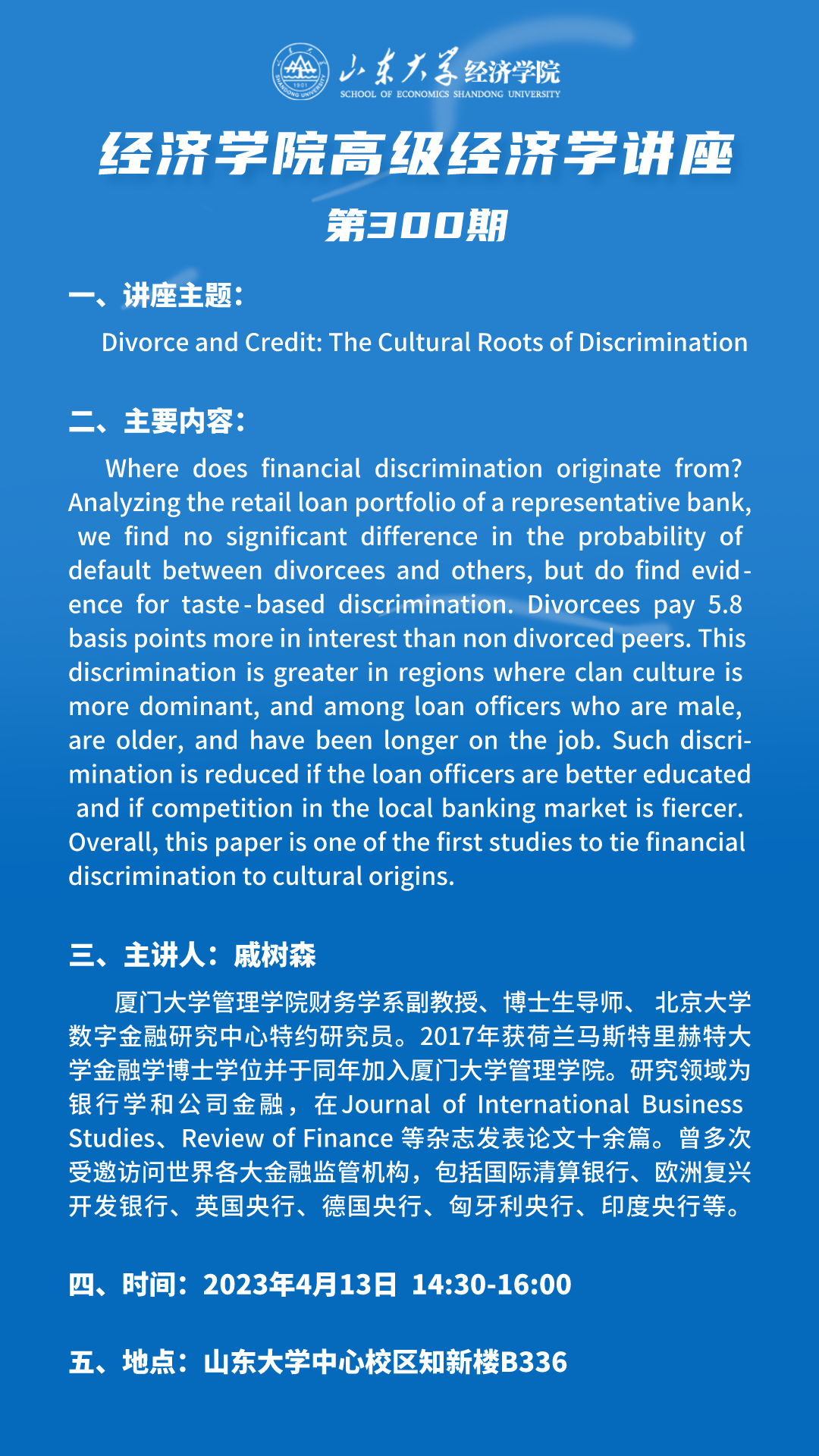 Divorce and Credit:The Cultural Roots of Discrimination(tyc41183太阳成集团高级经济学讲座)