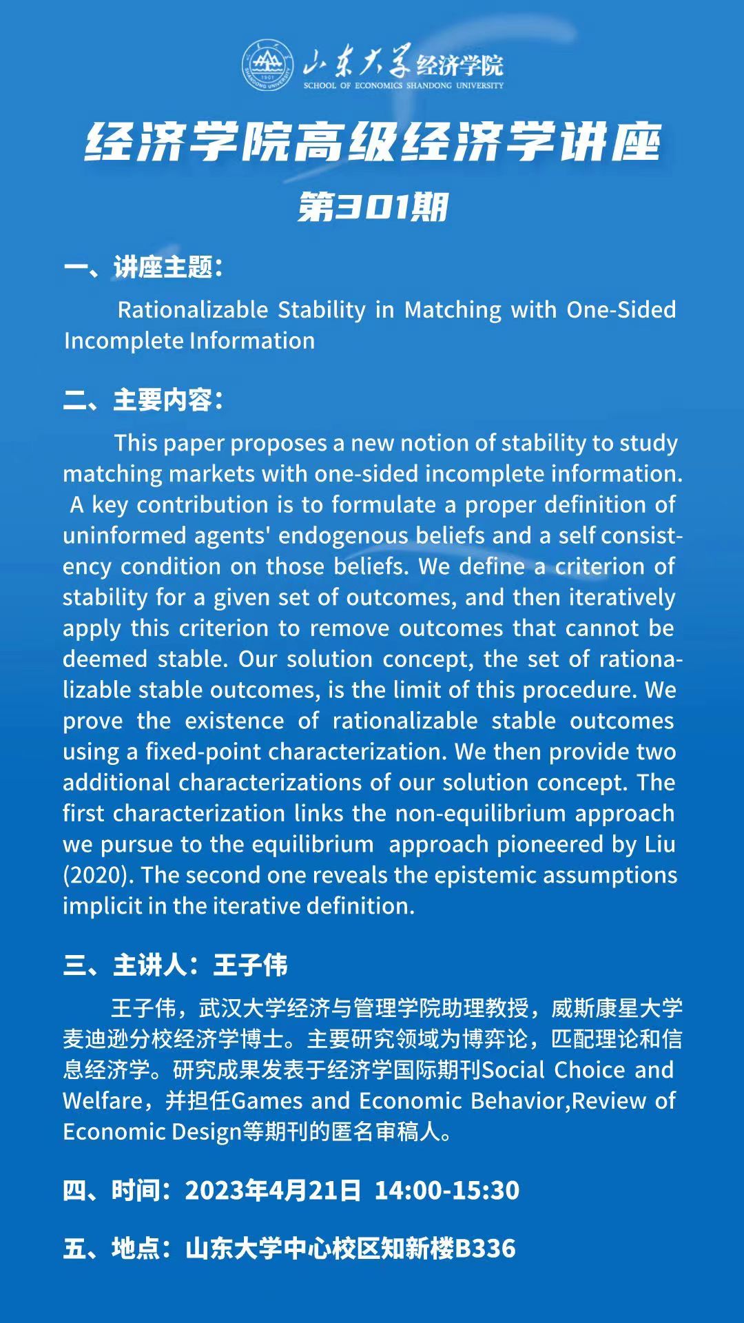 Rationalizable Stability in Matching with One-SidedIncomplete Information(tyc41183太阳成集团高级经济学讲座第301期)