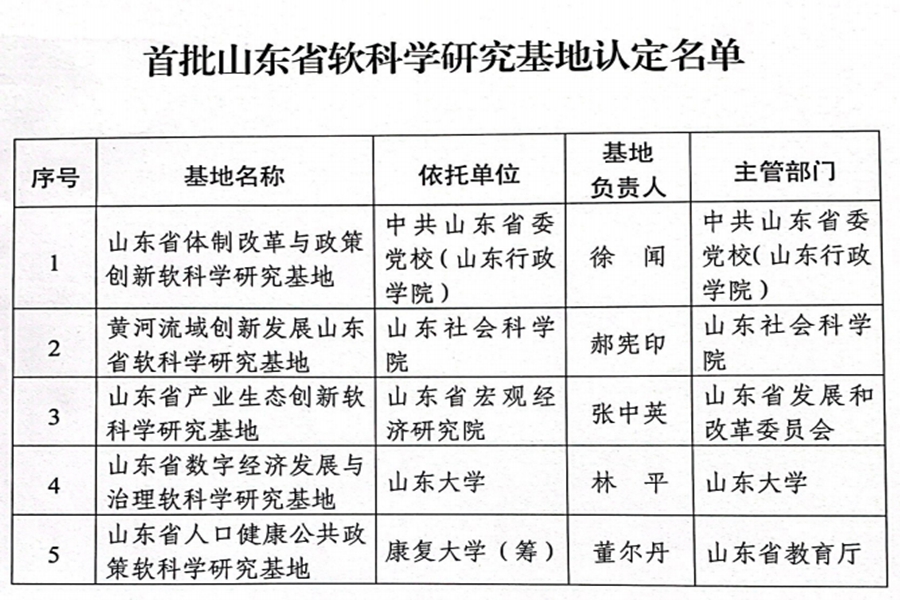 近日,山东省科学技术厅发布了关于认定首批山东省软科学研究基地的通知,tyc41183太阳成集团院长林平教授负责的“山东省数字经济发展与治理软科学研究基地”入选,全省共有5个基地被首批认定。