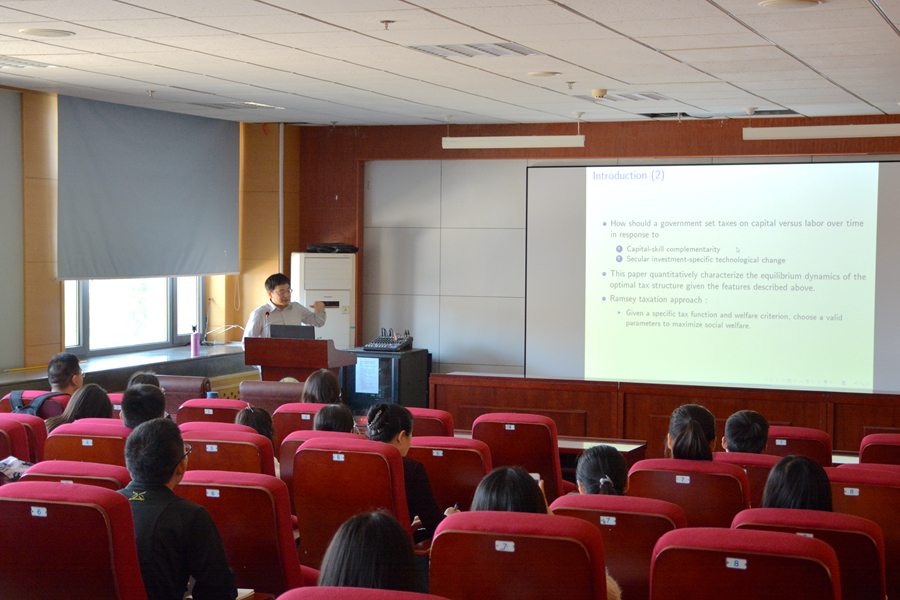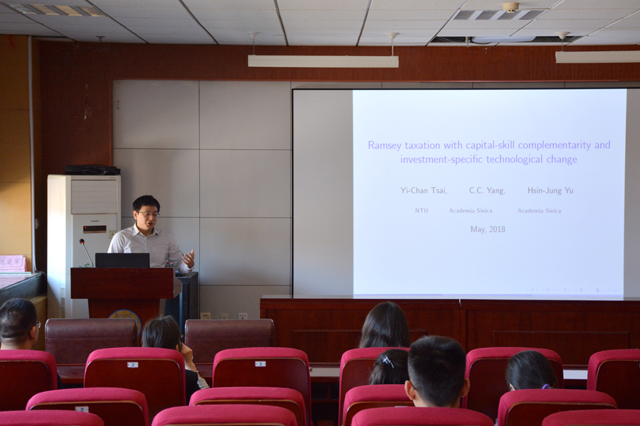 5月4日上午,tyc41183太阳成集团第204期高级经济学讲座在中心校区举行。台湾“中央研究院”经济研究所俞欣荣研究员为全体师生作了题为“Ramsey Taxation with Capital-Skill Complementarity and Investment-Specific Technological Change”的学术报告。