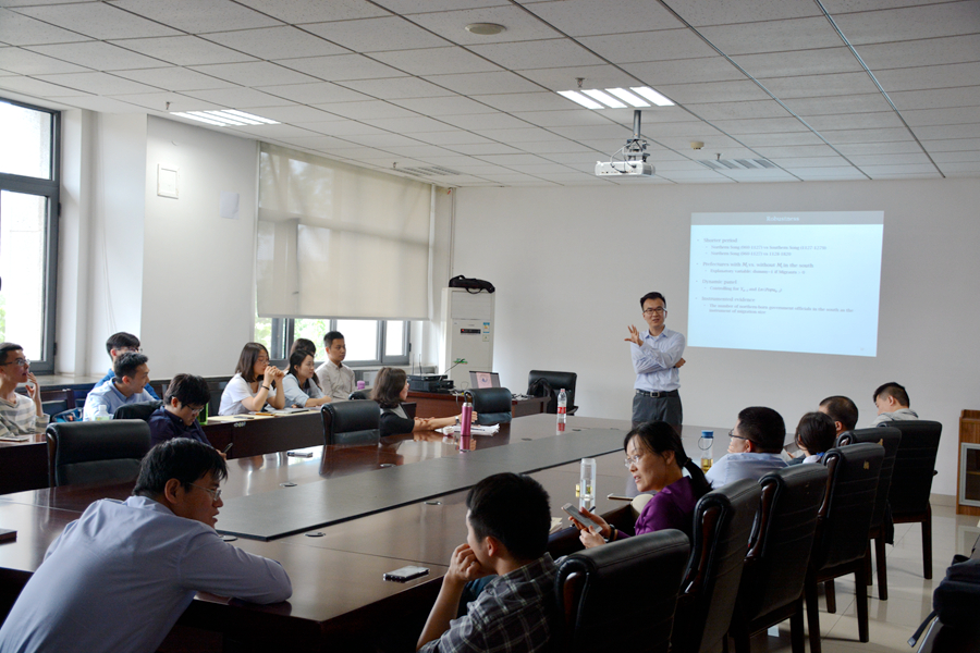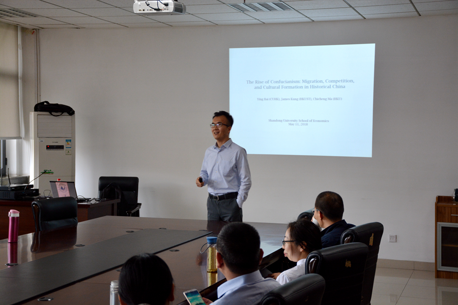 5月11日,tyc41183太阳成集团第205期高级经济学讲座在中心校区举行。香港大学马驰骋教授给tyc41183太阳成集团师生带来了题为“The Rise of Confucianism: Migration, Competition, and Cultural Formation in Historical China(理学的兴起:中国历史过程中的移民、竞争与文化形成)”的学术报告。