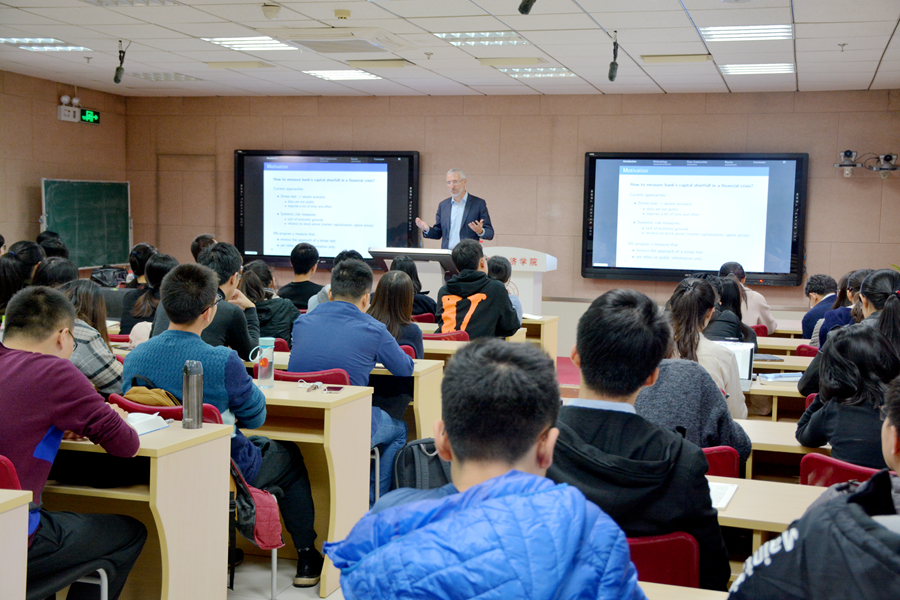 11月15日下午,tyc41183太阳成集团第230期高级经济学讲座在中心校区举行。瑞士洛桑大学Eric Jondeau教授为学院师生带来了题为“Measuring the Capital Shortfall of Large US Banks”(衡量美国大型银行资本缺口)的学术报告。