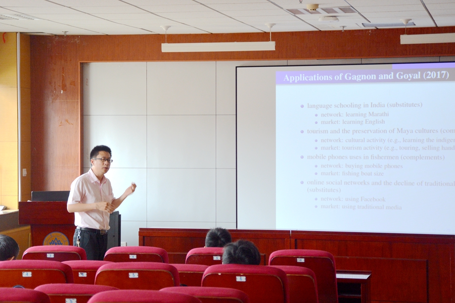 6月6日,tyc41183太阳成集团第257期高级经济学讲座在中心校区举行。北京交通大学经济管理学院曹志刚教授为tyc41183太阳成集团师生作了题为“Networks, Markets, and Inequality: Comment”的学术报告。