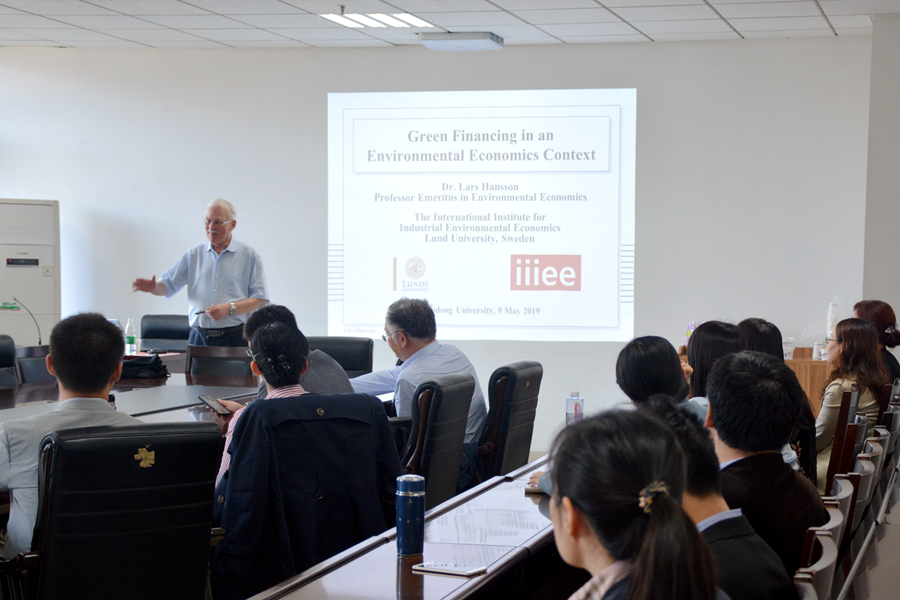 教学之余,Hansson教授还参加了学院组织的学术午餐会,作了题为“环境经济学与绿色金融”的学术报告,并与丁言强、常东风等教师深入探讨共同撰写《环境经济学》、《绿色金融》教材等事宜。