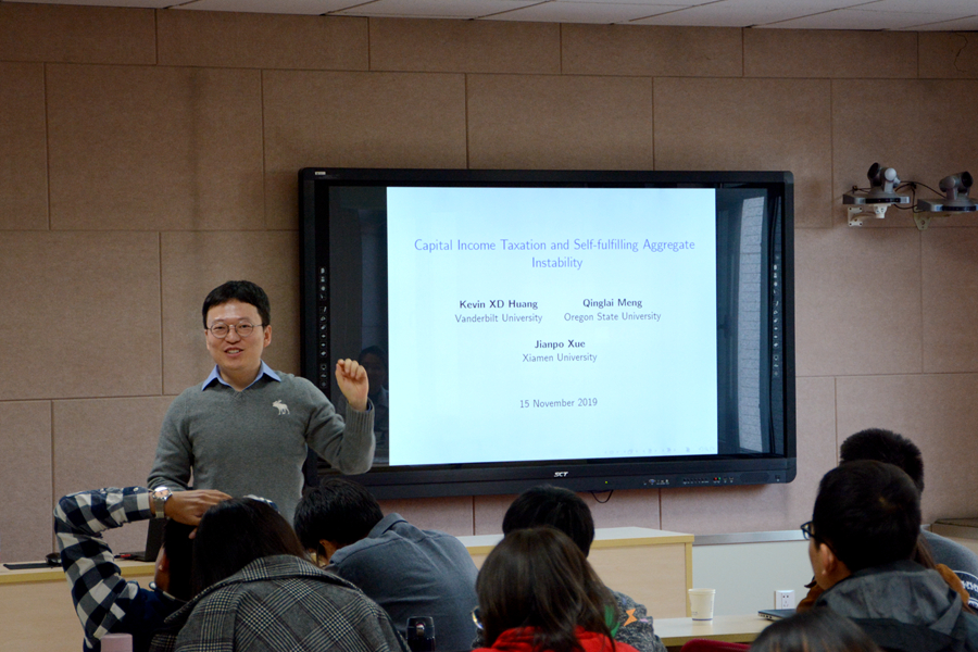11月15日上午,tyc41183太阳成集团第269期高级经济学讲座在中心校区举行。厦门大学王亚南经济研究院、tyc41183太阳成集团教授薛涧坡为学院师生带来了题为“Capital Income Taxation and Self-fulfilling Aggregate Instability”的学术报告。