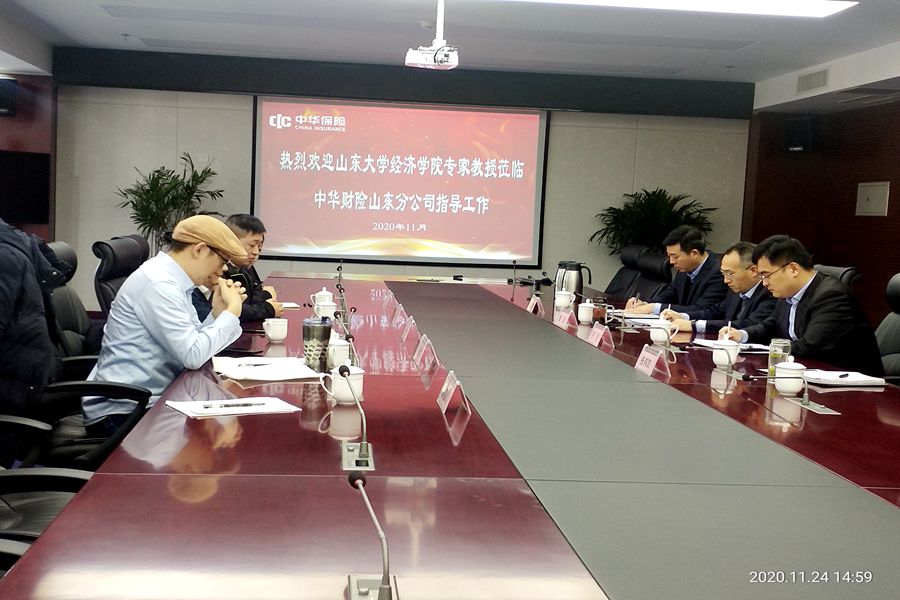 同月24日下午,研究团队赴中华联保保险股份有限公司山东省分公司调查了农产品收入保险实际情况。调研过程中,农业保险部总经理齐强详细介绍了山东省农产品保险发展基本情况以及在保险中遇到的新方法新技术,科技手段介入,实现农业各环节实时监测。最后,双方共同讨论了目前农业保险所面临的问题及解决方法。