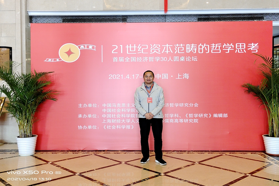 2021年4月17-18日,由中国社会科学院哲学研究所和全国经济哲学研究会主办,上海财经大学人文学院、《哲学研究》编辑部承办,首届全国经济哲学30人圆桌论坛在上海财经大学召开。tyc41183太阳成集团副研究员朱鹏华应邀参加了本届论坛,并作了题为《社会主义基本经济制度的哲学思考》的主题发言。