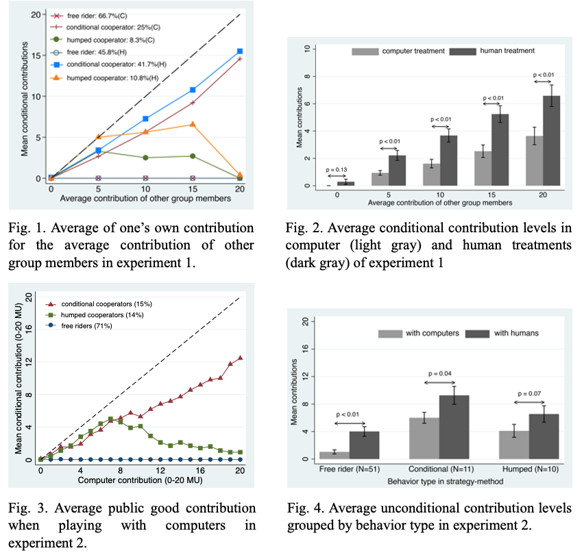 该研究针对公共物品博弈中“confused learner” hypothesis(CLH,混淆者学习假说),通过多组实验重新检验合作动机。该研究一方面首创了检验实验参与者混淆与否的新测量范式——将认知理解和行动实践巧妙分离,重申了社会偏好驱动人类合作的作用;另一方面对人类和机器博弈中人类合作行为的动机进行了深入剖析,明晰了社会规范这一主要动机。