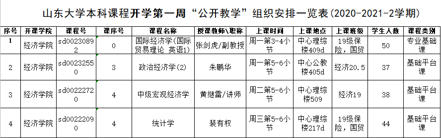 太阳成集团tyc41183本科课程开学第一周“公开教学”组织安排一览表(2020-2021-2学期)