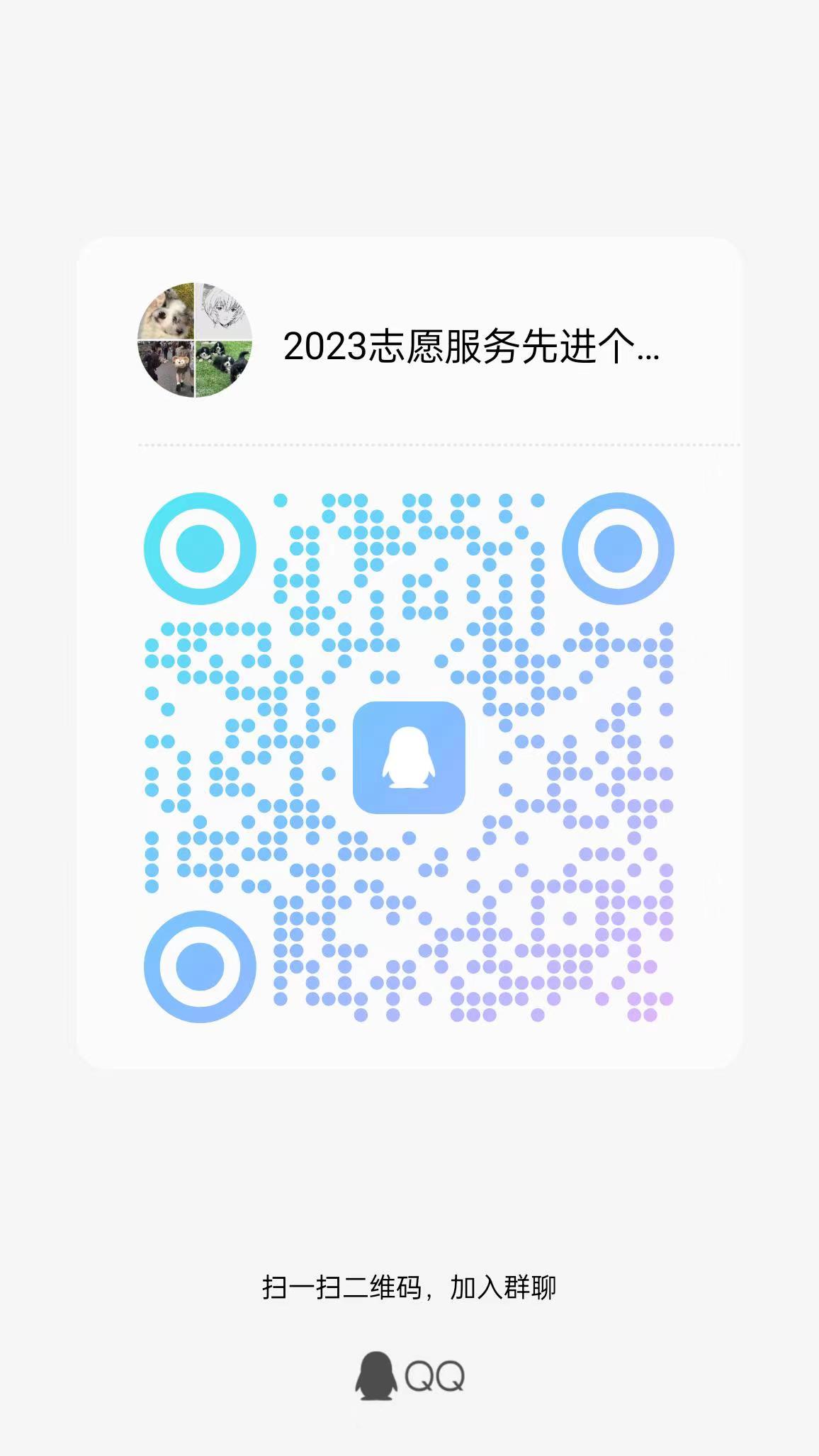 1.组织(个人)申报。各申报单位、个人须填写《太阳成集团tyc41183优秀志愿者报名表》(附件一)、《太阳成集团tyc41183优秀志愿服务组织(团队)推荐表》(附件二),并提交相关材料至各班团支书,由各班团支书将报名表于2023年11月10日24时前打包发送至邮箱qzxhuodongbu@163.com,文件命名格式为“XX班+志愿服务先进典型报名表”。各申报个人扫描下方二维码入群等待后续答辩通知。