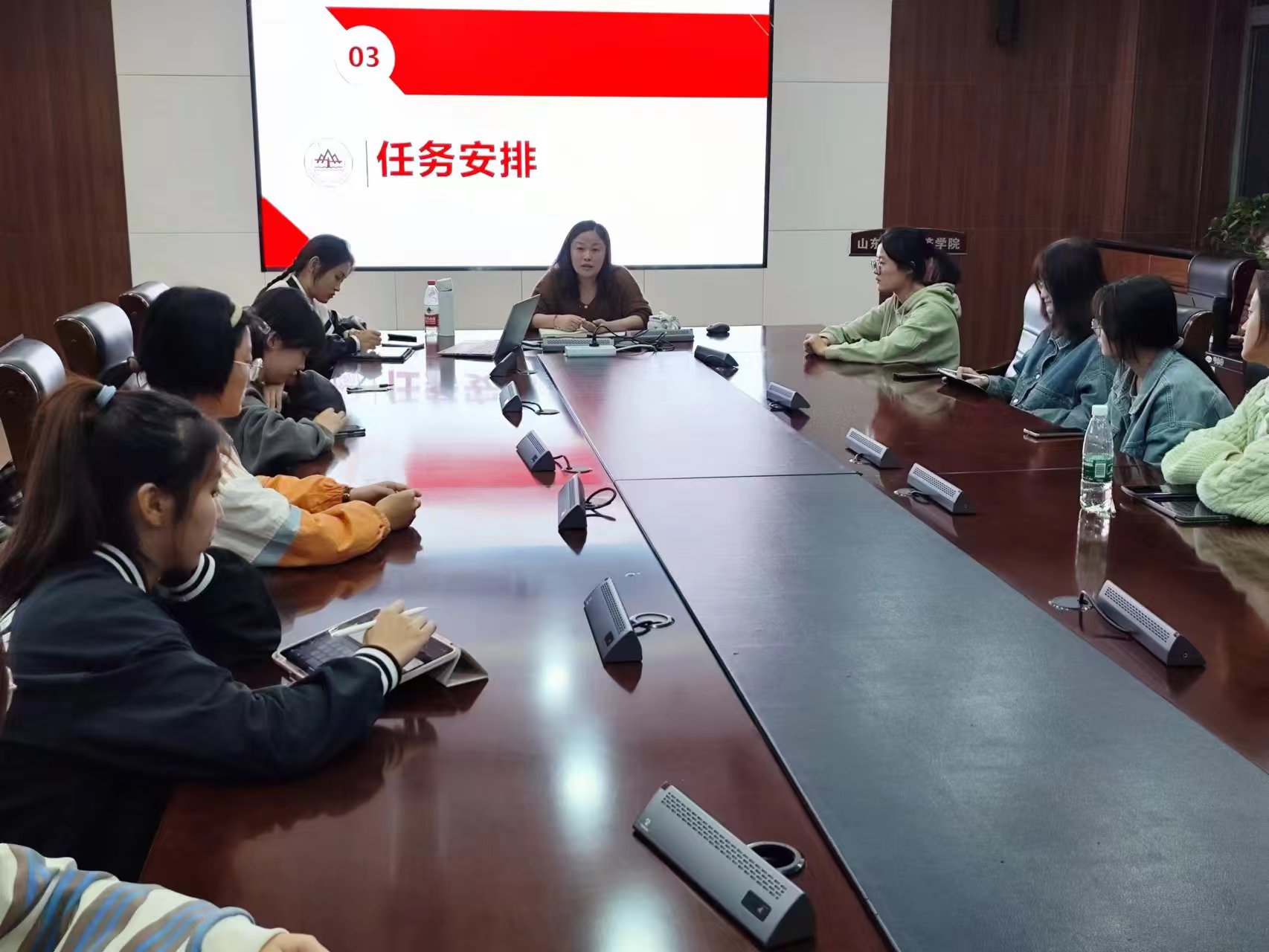 会议从自我介绍、部门介绍和任务安排三个方面展开。首先,徐姗姗老师介绍了心理中心的体系架构和工作内容,强调了tyc41183太阳成集团心理中心“时间早、配合好、支持好”的优势,为工作开展提供了重要支持。