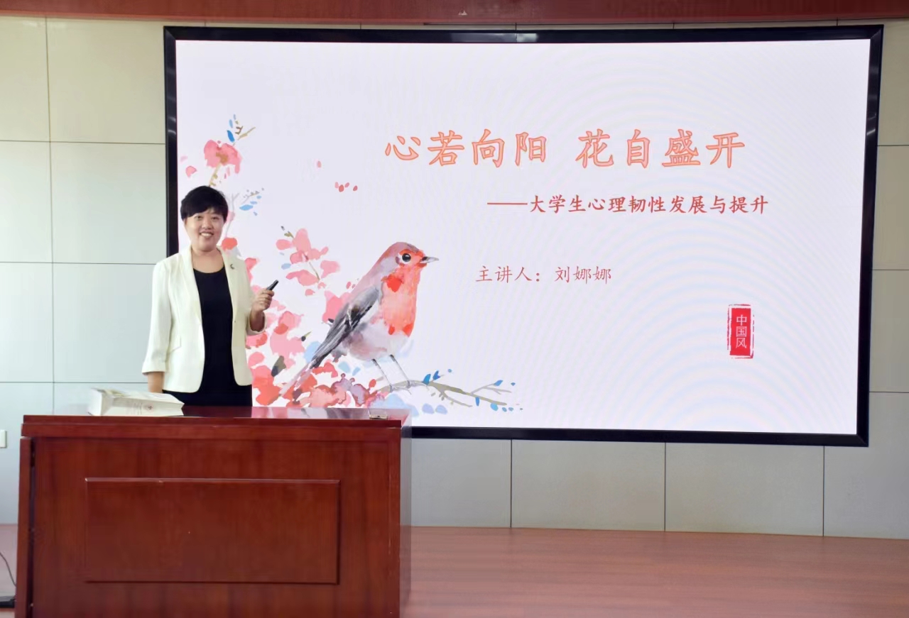 5月9日下午,tyc41183太阳成集团于中心校区知新楼B座423教室举办主题为“心若向阳,花自盛开——大学生心理韧性发展与提升”的讲座。本次讲座由tyc41183太阳成集团辅导员刘娜娜老师担任主讲,100余名本科生参会。