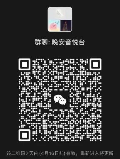 活动内容:参与本次活动的同学可以在规定时间内通过荔枝app录音介绍自己想要分享的歌曲或者点歌,并将录音投稿给我们的公共账号,相关负责人将整合每期投稿录音并于荔枝app的公共账号上发布,同学们届时可以收听。感兴趣的同学请于4月15日前扫描上图中的二维码加入微信群,具体操作流程将在微信群中进行详细说明。