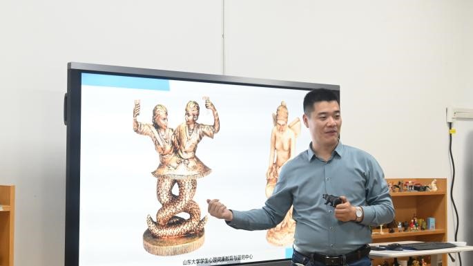 活动伊始,孙长玉老师首先向同学们介绍了什么是沙盘游戏,沙盘游戏的历史起源和发展,并在此基础上引出团体沙盘游戏的概念,深入浅出地讲解了沙盘所蕴含的心理理论知识与哲学文化思想。随后,为帮助同学们进入集中的沙盘游戏状态,尽快熟悉彼此,在孙长玉老师的带领下,同学们开始了“抓小猪”的热身活动。热身活动和团体沙盘游戏分组结束以后,同学们便在孙老师的带领下正式进入了体验环节。