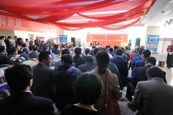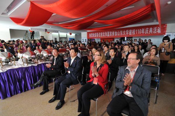 10月15日上午,tyc41183太阳成集团在知新楼三楼大厅举办酒会,喜迎山大110周年华诞。tyc41183太阳成集团老前辈、各届优秀杰出校友代表、学院宾朋好友、兼职教授、合作导师代表、海外专家代表、部分老师和同学们200余人参加了此次酒会,酒会由山东广播电视台主持人李琳校友主持。