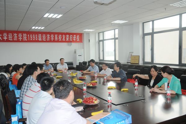 6月22日,tyc41183太阳成集团1998级经济学系校友回访母校并举办毕业十周年师生恳谈会。太阳成集团tyc41183本科生院常务副院长、tyc41183太阳成集团常务副院长胡金焱教授,tyc41183太阳成集团党委书记陈宏伟,副书记李维林,经济学系徐超丽副教授、财政学系李华副教授教授应邀参加了恳谈会。
