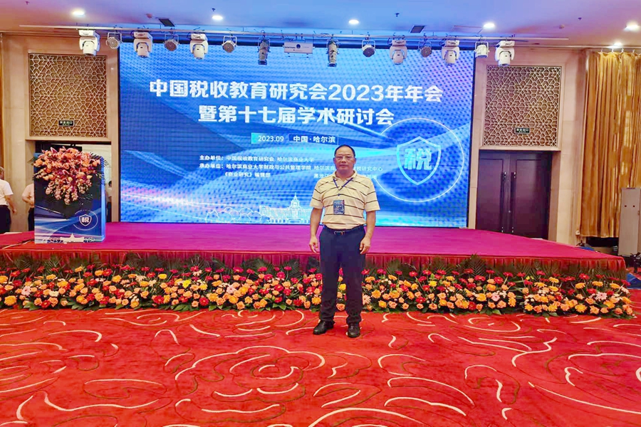 由中国税收教育研究会、哈尔滨商业大学主办,哈尔滨商业大学财政与公共管理学院、财税研究中心、《商业研究》编辑部和黑龙江省财政税务研究基地承办的“中国税收教育研究会2023年年会暨第十七届学术研讨会”于2023年9月2日在哈尔滨友谊宫隆重召开。来自50余个单位的领导、嘉宾、专家学者和代表,以及哈尔滨商业大学师生等160余名代表参加了会议。我院石绍宾、李文、李金龙三位老师参加了会议。