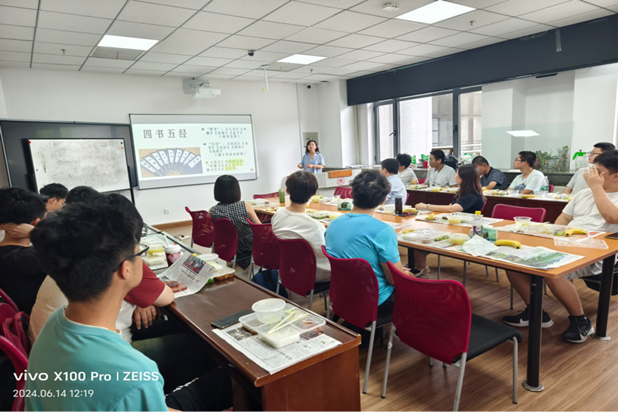 午餐会上,黄海啸副教授作主题为“经典永流传之经世济民”的报告,报告讲解了《史记》《周易》《中庸》等国学经典中有关经济之本源的思想论述,引导学生由民本民生的角度思考古人知事治世的大智慧,启发学生从古籍中获取解决民生之忧的当代方案,激发了学生的学术志趣和创新动力。黄海啸在报告中结合薛暮桥班拔尖人才培养目标及《论语先进篇》中关于何为“先进”的论述,勉励同学们努力成长为有理想、敢担当、能吃苦、肯奋斗的新时代好青年,要深入学习领会习近平总书记在文化传承发展方面的重要讲话精神,进一步坚定文化自信自强,努力为弘扬传承经典贡献力量。与会师生积极踊跃参与交流讨论、分享学习心得,午餐会现场气氛轻松融洽。