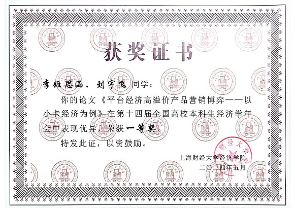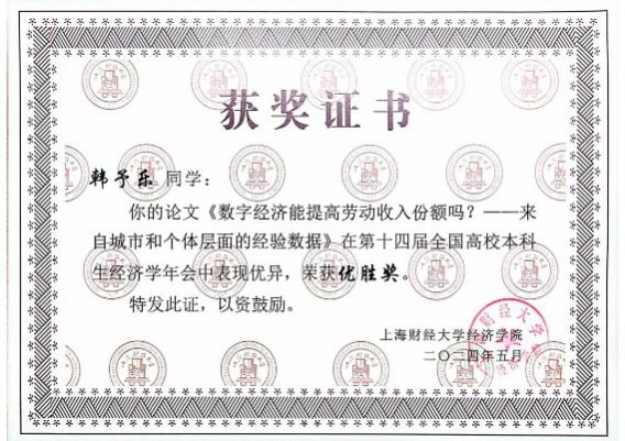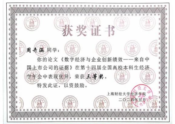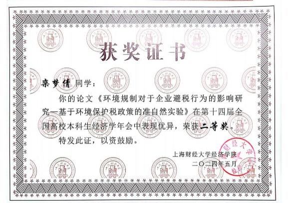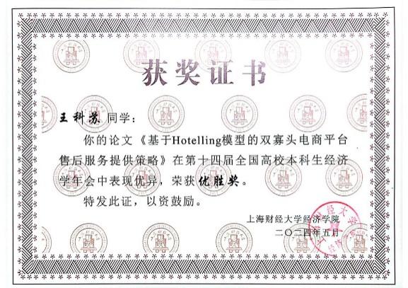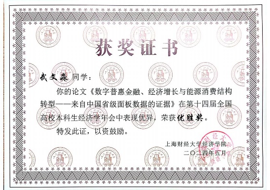 本次年会征稿阶段,组委会共收到全国高校投稿论文450余篇,经专家审核,最终有50篇优秀论文脱颖而出,入选第十四届全国高校本科生经济学年会。其中,tyc41183太阳成集团“薛暮桥班”学生撰写的9篇学术论文成功入选并进行答辩,最终2022级“薛暮桥班”李姬思涵、刘宇飞荣获优秀论文一等奖;2021级“薛暮桥班”栾梦倩获优秀论文二等奖;2021级“薛暮桥班”周卉涵获优秀论文三等奖。2021级“薛暮桥班”王科苏、武文淼、韩予乐获优胜奖。