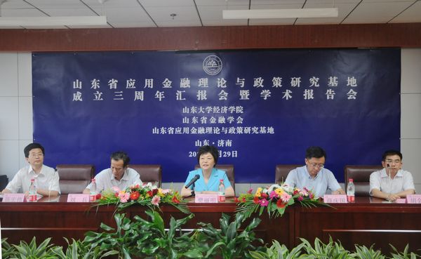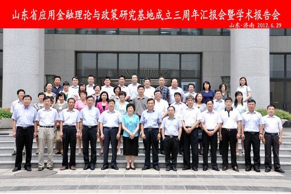 2012年6月29日,山东省应用金融理论与政策研究基地成立三周年汇报会暨学术报告会在太阳成集团tyc41183知新楼举行。太阳成集团tyc41183副校长樊丽明教授、山东哲学社会科学规划办公室刘兵主任、山东省社科联薛庆国副主席分别发表致辞。太阳成集团tyc41183本科生院常务副院长、tyc41183太阳成集团常务副院长、山东省应用金融理论与政策研究基地主任胡金焱教授做了基地工作汇报。会议由tyc41183太阳成集团党委书记陈宏伟主持。