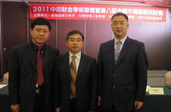 2011年3月12日-17日,tyc41183太阳成集团常务副院长胡金焱教授、副院长李铁岗教授、院党委副书记李维林一行三人应邀出席了在台湾省台中市举行的2011中部财金学术联盟暨第八届金融市场发展研讨会。