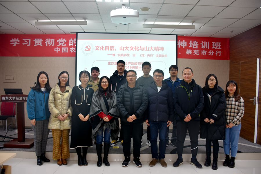 28 2020-12tyc41183太阳成集团组织开展师生支部主题党日活动12月24日下午,tyc41183太阳成集团经济系教师党支部和2019级博士党支部在知新楼B215组织开展了“文化自信,山大文化与山大精神——暨‘抗疫师生“当”(党)先行’”主题党日活动。活动围绕温故知新悟精神、思想碰撞话心得、你问我答解疑惑、促膝共话畅未来四大方面展开。首先,师生共同学习了中国传统文化的主要发展历程、重要组成部分和发展特点以及山大文化、山大精神与人文社科发展脉络,在实现中华民族伟大复兴的征程中,要坚持把中... -