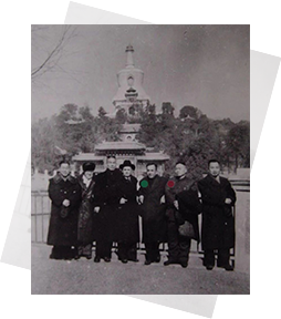 图为1950年代薛暮桥与孙冶方一起陪同国家统计局的苏联专家游览北京的公园,右二为薛暮桥,右三为孙冶方。
