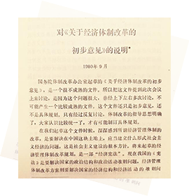 1980年9月,薛暮桥代表国务院体制改革办公室在中央召开的各省市区第一书记会议上作了《对〈关于经济体制改革的初步意见〉的几点说明》的报告。 -