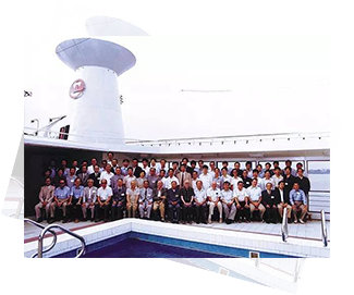 图为巴山轮会议全体与会人员在甲板上合影,与会的中方代表包括薛暮桥、吴敬琏、高尚全、赵人伟等人。外国嘉宾包括曾获诺贝尔经济学奖的美国经济学家詹姆士·托宾;英国著名政府官员、国际公务员阿莱克·凯恩克劳斯爵士;德国中央银行行长、著名国际货币政策经济学家奥特玛·埃明格尔;匈牙利科学院经济研究所研究部主任雅诺什·科尔奈;英国牛津大学安瑟尼学院高级研究员弗拉基米尔·布鲁斯;南斯拉夫政府经济改革执行委员会委员亚历山大·巴伊特;日本兴业银行董事小林实以及时任世界银行驻中国首席代表林重庚等。 -