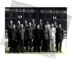 1984年5月5日,国务院经济研究中心创始人在中南海紫光阁合影。前排左起:徐雪寒、吴俊杨、马洪、薛暮桥、周太和、马宾、季崇威。 -