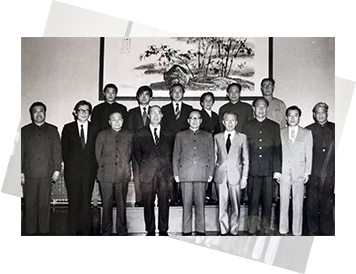 图为中日经济交流会部分成员合影(中方成员有谷牧、薛暮桥、马洪、邱纯甫、廖季立、李灏、薛葆鼎;日方成员有大来佐五郎、向坂正男、佐伯喜一、河合良一、筱原三代平、下河边淳、宫崎勇、河野力、小林实) -