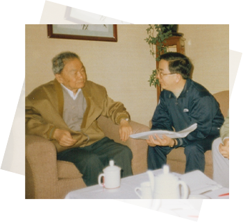 上个世纪八十年代后期,吴敬琏(左二)与薛暮桥探讨经济改革问题